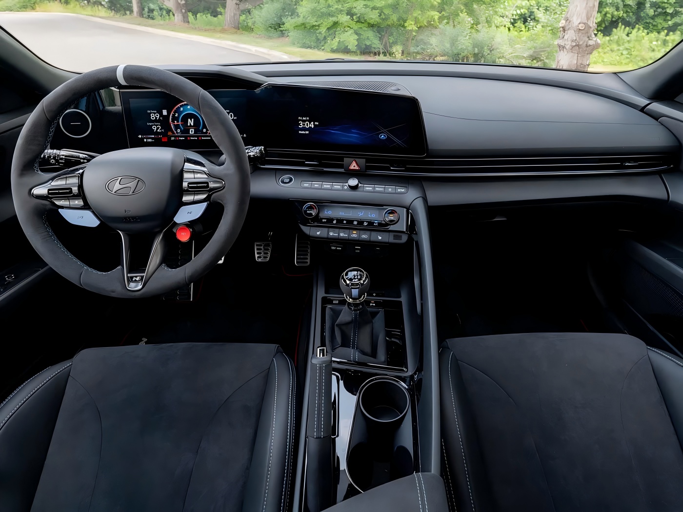 З точки зору інтер’єру, загальний макет нового автомобіля не сильно відрізняється від експлуатації Elantra n, але він оснащений рульовим колесом Alcantara з маркером положення 12 годин. Тим часом, передній ряд оснащений синіми ременями безпеки, дверні підвіконня оснащені N Performance Metal підвіконня, а на автомобілі також є килимки для підлоги N, а також велика кількість інтер'єрних наборів Alcantara. Наприклад, ручний важіль гальма для паркування, важіль перемикання передач та підлокітник підлокітник загорнуті в Алькантара. Нарешті, на дверях є логотип "версія TCR", який сповнений емоційної привабливості.